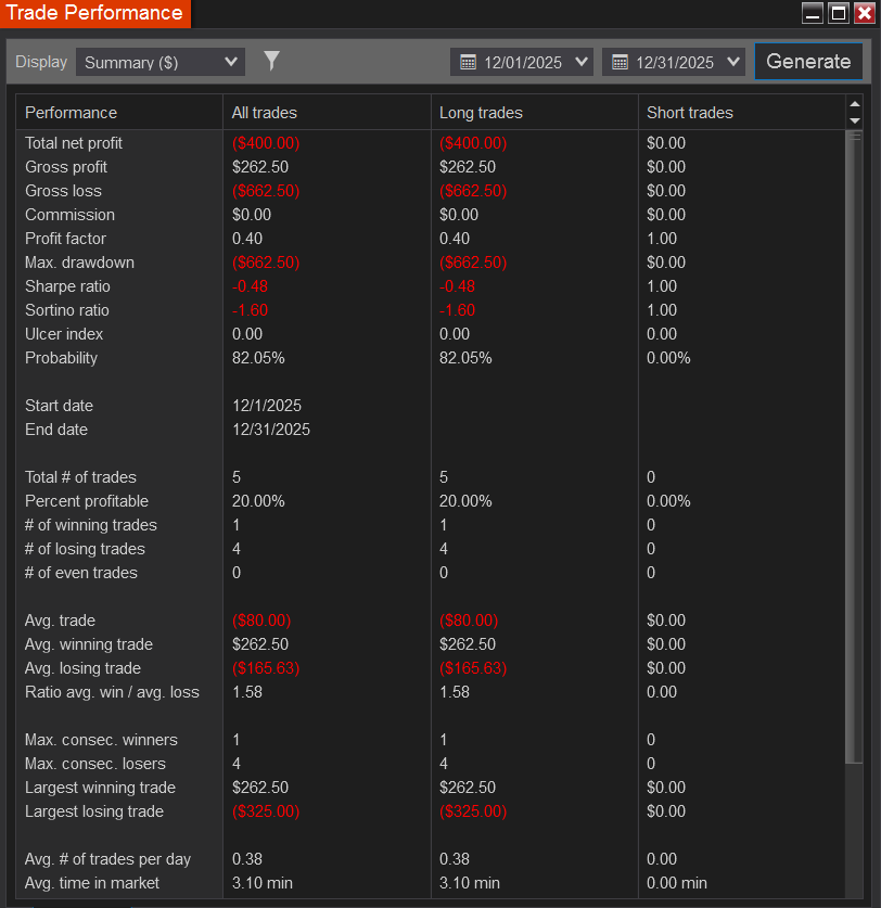 Derived from the monthly NinjaTrader trade performance reports below.